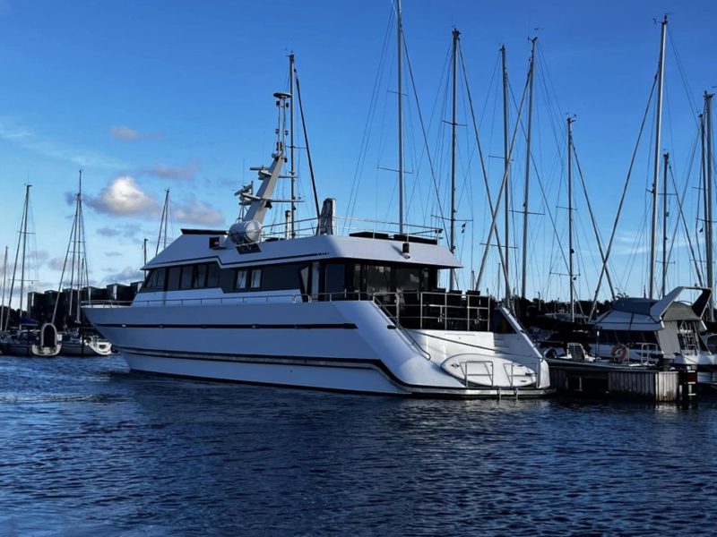 Længde 92 fod / 28 m – 2 generatoranlæg – Dobbelt bow-thruster + stern-thruster – Fuldisoleret stålskrog, termoruder – Oliefyr m. vandbåren varme – 2 store ferskvandstanke – Kommercielt el-, vand- og varmesystem – Godkendt til sejlads med Yachtskipper 3-bevis – HK840 – Motortimer 2950 – Motor årgang 2002 – Ferskvandskølet – Drev skrueaksler – Propel 2 x 3-bladet – Bovpropel2 bow + 1 stern – Brændstoftank13000 l – Hastighed 9-12 knob – Kortplotter – Log – Ekkolod – Fiskesøger – VHF – Radar – Kompas – Autopilot / Selvstyrer – Lanterner – GPS – Vindmåler – Komfur – Køleskab – Toilet – Holdingtank 1250 l – Brusebad – Køjer 8-10 – Ståhøjde 200 cm – TV – Musikanlæg – Køjelængde 220 cm – Søgelænder – Badeplatform – Badestige – Fendere – Fortøjninger – Redningskrans – Brandslukker – Anker 2 stk. – Redningsbåd 2 stk.