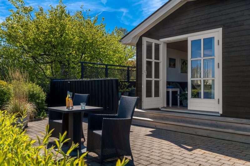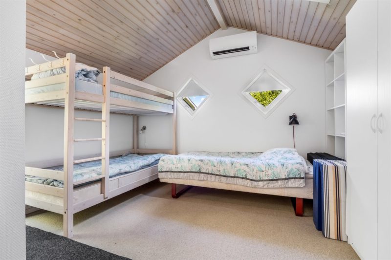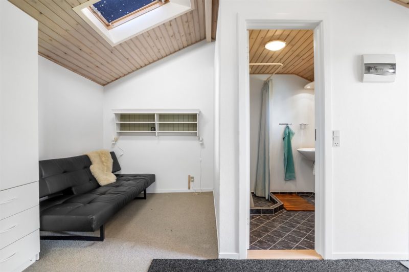 Annekset fremstår nyere og indrettet med et stort, højloftet rum med flere sovepladser samt eget badeværelse med bruseniche og håndklædetørrer. Her er ligeledes installeret luft/luft-varmepumpe, hvilket giver god komfort året rundt.