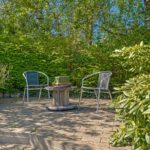 Grunden byder på både øst- og vestvendte terrassemiljøer, hvor solen kan følges hele dagen. På den vestlige del af grunden findes læfyldte opholdszoner samt en sekskantet glaspavillon. Herudover carport, udhus og parkering på grunden.
