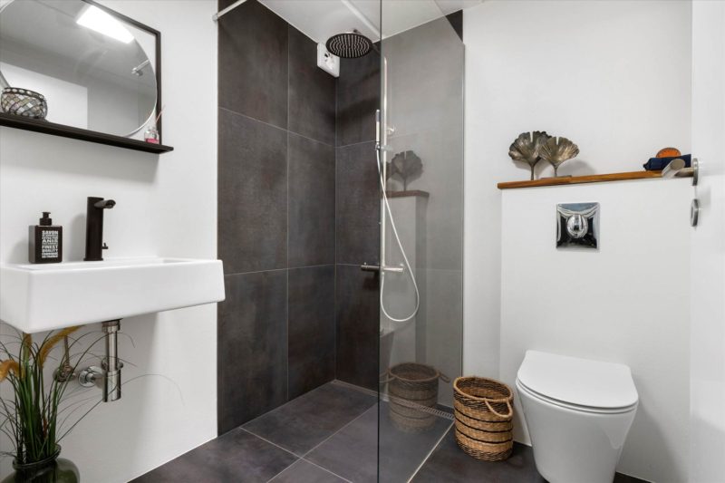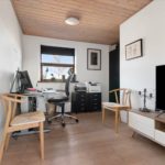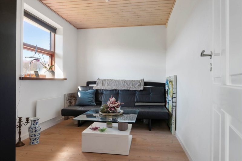 Boligen byder på entré og fordelingsgang, tre gode værelser – heraf et soveværelse med direkte udgang til terrasse, hvorfra der er udsigt over havnen. Badeværelset fremstår pænt og funktionelt med bruseniche og gulvvarme.